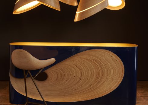 Vertical fluted wall paneling fashioned from natural oak wood by Magvee grounds the interiors in warmth, while adding scale and contributing to the openness of the space. Kumar employed these surfaces to draw the eye upwards, accentuating the double height of the store, and to shape the overarching mood of the store.